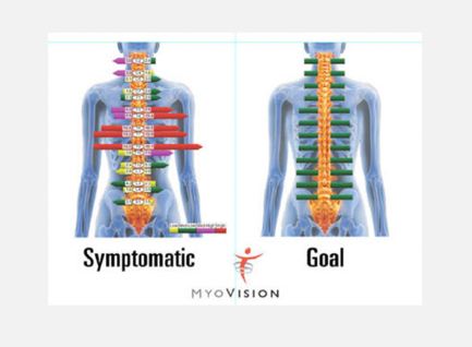 The ScanVision utilizes technology similar to an EKG, but instead of measuring heart muscle activity, it assesses muscular compensation along the spine. This scanning surface EMG (sEMG) exam functions as an electronic form of palpation, offering an objective way to measure and track spinal muscle activity — a key indicator of spinal health.
